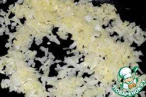 Лук почистить, мелко нарезать и обжарить до мягкости с 2 ст. л. сливочного масла.
