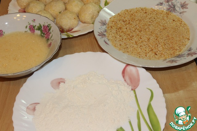 Оставшиеся яйца взбить со щепоткой соли. Обвалять арачини в муке, затем в яйце и панировочных сухарях.