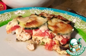 И снова предлагаю вам рецепт с курочкой! На этот раз- пирог... Только совершенно без теста. Вместо него-только овощи. И так, обо всем по порядку!