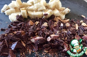 Измельчите ножом шоколад, обжаренный миндаль и банан.
