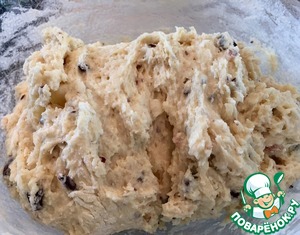 Все перемешайте с творожным тестом. Должно получиться достаточно крутое тесто.