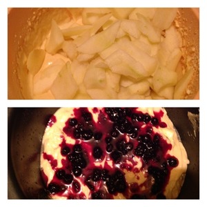 Чашу МВ смазать растительным маслом и выложить яблочное тесто, сверху произвольно выложить варенье. -