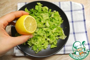 Салат порвать руками на очень маленькие кусочки и выложить на тарелку.