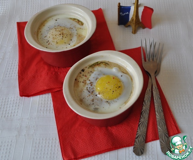 Предлагаю вам вариант вкусного и необычного завтрака выходного дня во французском стиле - яйца-кокот. Благодаря приготовлению на водяной бане, яйца имеют очень нежную консистенцию, если, разумеется, у вас получится ухватить тот момент, когда яйца-кокот следует достать из духовки. И, как и всегда, вы можете экспериментировать с составом, используя различные добавки и каждый раз получая новое блюдо. В переводе с французского кокот (cocotte) – курочка. То ли потому, что посуда для приготовления этого блюда напоминала маленькую курочку, то ли потому, что готовили кокот из яиц.