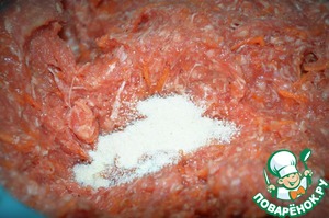 Вымешивать фарш руками, постепенно добавляя манку, ГЛАВНОЕ!, чтобы не стало жидким