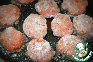 Сформировать котлетки (можно обвалять в сухарях или в муке), выложить на разогретую сковородку, жарить примерно 5 минут