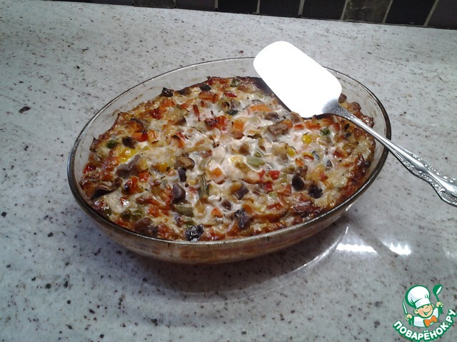 Аккуратно выложить остальную смесь и запекать в течение 1 часа при 180 градусах.