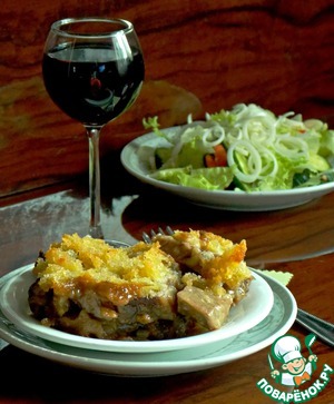Закрываем форму фольгой и ставим в духовку при t=170-180 на 20 мин. Вынимаем, снимаем фольгу и ставим еще на 15-20 мин. Корочка должна зарумяниться. Вынимаем и подаем.