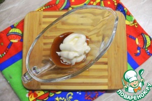 Каждый блинчик промазать соусом и накрыть сверху другим блинчиком.