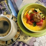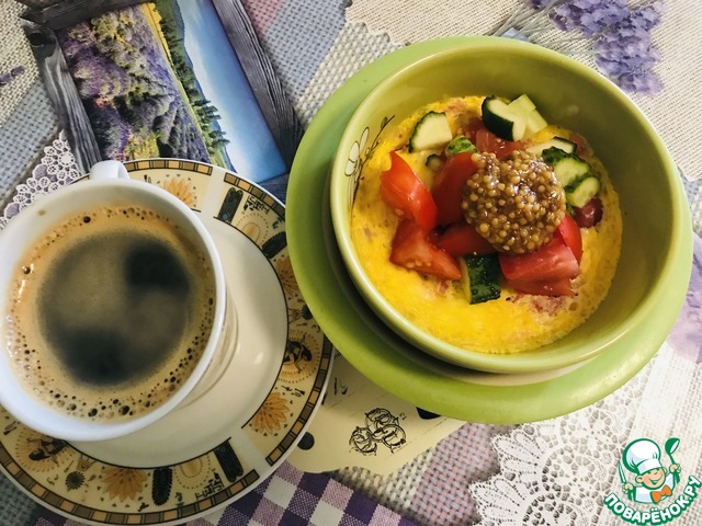 Быстрый и сытный завтрак. Омлет в кружке очень красиво смотрится на столе, да и вкусно это)