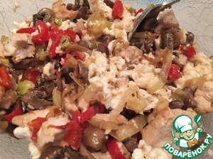 Остудите. Натрите моцарелла и смешайте с остальной начинкой. Посолите. Поперчите по вкусу.