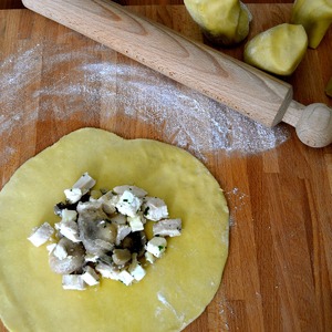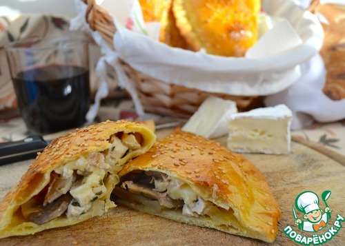 В 18-м столетии жена фермера из Нормандии придумала, как усовершенствовать рецепт мягкого сливочного сыра, который мы теперь называем камамбер. Именно он придает пикантность начинке из куриного мяса, лука и грибов. Обязательно попробуйте приготовить эти пирожки - лёгкое, нежное и просто очень вкусное тоненькое тесто и сочная начинка...