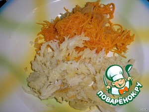 Для начинки нам потребуется по 2 ст. ложки (без горки) обжаренной моркови и картофеля.