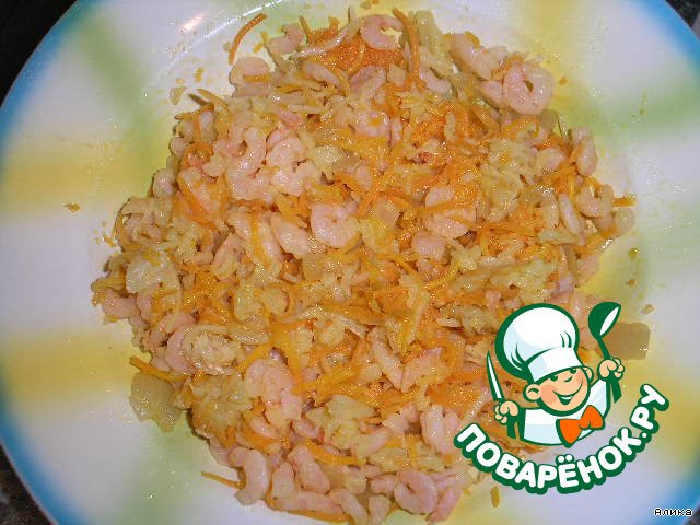 Смешиваем морковь, картошку, лук и креветки, солим и перчим по вкусу.