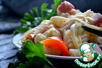 Вдохновила меня на приготовление такого блюда передача «Званный ужин», к сожалению, рецепт не записала, пришлось фантазировать. А тут еще нашла ракушки у fanny. У меня получилось морское блюдо, и его очень быстро смели… волной :)