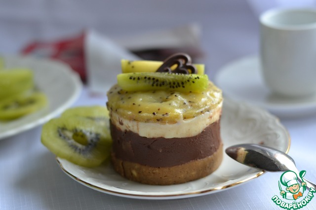 Красивый и вкусный десерт. Печь ничего не надо. Кислинка киви и шоколад прекрасно сочетаются. При украшении успользуйте свою фантазию.