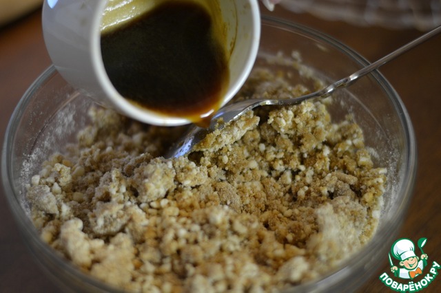 Сварить кофе. Вылить в печенье, массу вымешать.
