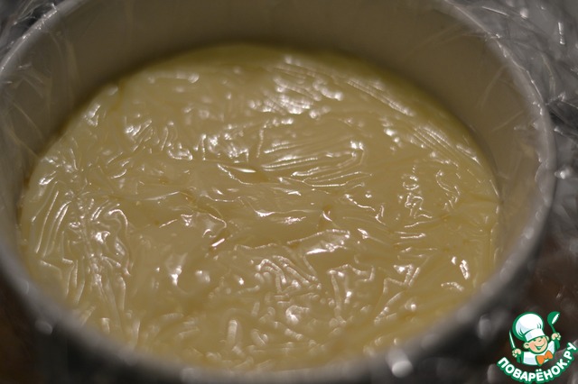 Прикрыть пудинг пленкой, чтобы не образовалась корка.