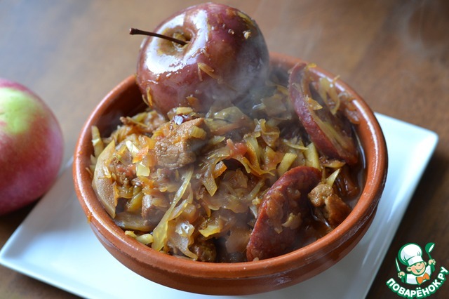 Рецепт «Бигус с яблоками и брусничным вареньем»: