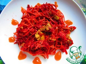 Многие не любят свеклу, я не исключение, но все таки ее готовлю и потихоньку начинаю привыкать, Сегодня у нас воскресенье, и вот утром пока была еще в кроватке думала что бы такое приготовить, перечислила что есть у меня в холодильнике, а в холодильнике у меня- отварная куриная печень и свекла, и вот созрело такое блюдо, К сожалению фотать не стала поэтапно так как не знала что у меня из этого выйдет! Но все очень оказалось просто! Выставляю на ваш суд