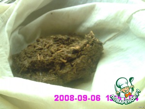 Где-то через час напиток готов, получается около полутора литров. Воду можно выключить, когда цвет вытекаемой жидкости сменился с темно-коричневой на светлый. Ни в коем случае не отжимайте мешок!!!