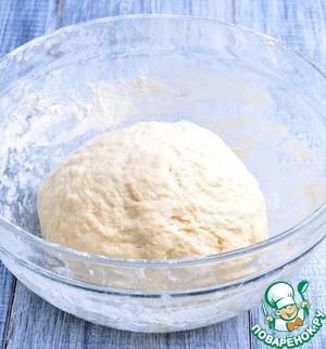 Накрыть герметично пищевой пленкой, оставить тесто на час подходить.