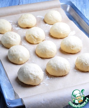Спустя время, присыпая тесто мукой, хорошо его вымесить чтобы не липло к рукам. Сформировать маленькие булочки, накрыть их чистым льняным полотенцем и оставить минут на 20 подходить.