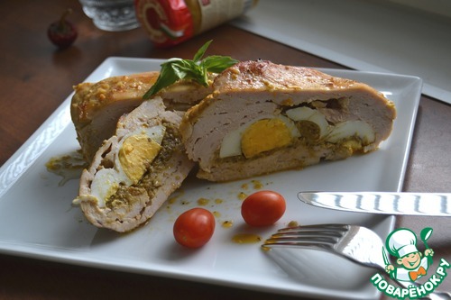 Рецепт «Запеченная курица с песто и яйцом»: