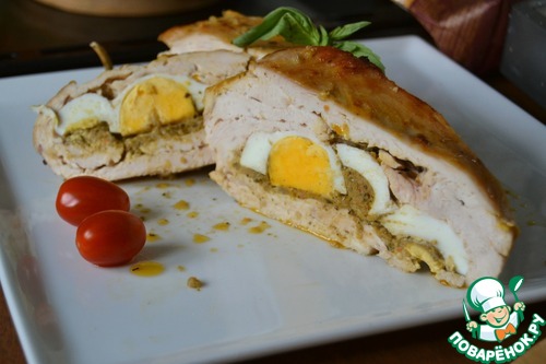 Запеченная курица с песто и яйцом