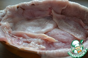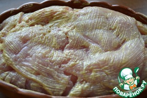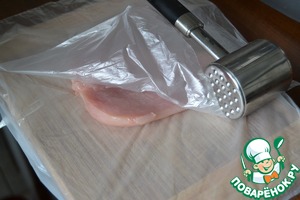 Куриную грудку разрезать и развернуть, как книжку.