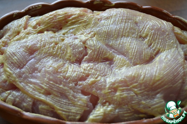 Смазать горчицей. -