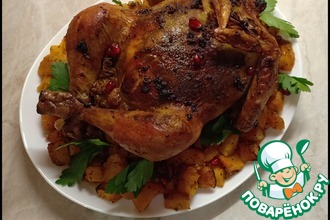 Снять фольгу и допечь еще 20 минут, чтобы курочка зарумянилась.