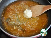 Чтобы загустить соус, добавляем шарики бёрр-мани, помешивая, до полного растворения. |