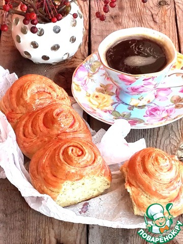 - Сироп фруктовый (для смазки готовых булочек - я брала брусничный) — 3 ст. л.