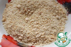 Миндаль измельчить. Насколько мелко, решайте сами. Мне больше нравится ореховая крошка. Кто-то предпочитает крупные кусочки.