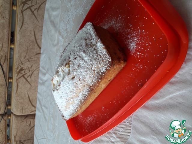 Когда кекс будет готов, посыпаем его сахарной пудрой.