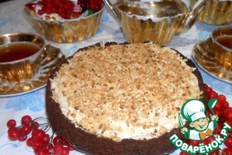Оставшиеся 100 г. печенья измельчить в крошку, не очень мелкую (можно блендером, можно скалкой) и тщательно посыпать верх торта.