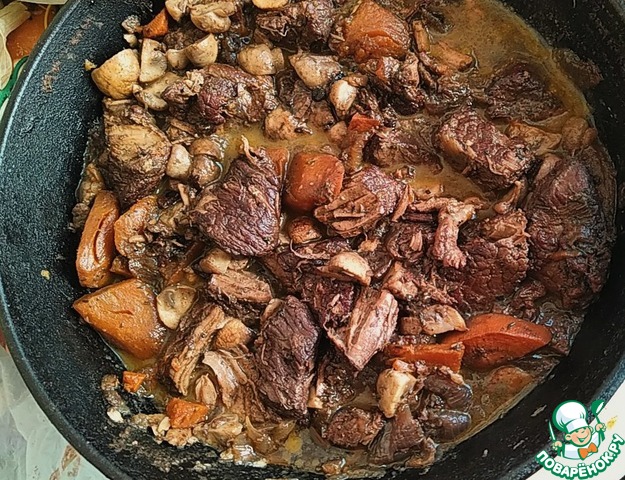 Рецепт «Говядина с шампиньонами и овощами "Бёф бургиньон"»: