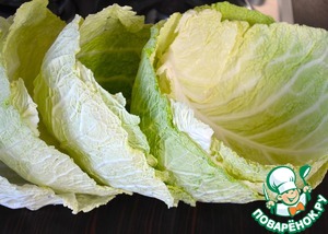 Подготовить капусту. Помыть кочан, вырезать кочерыжку и аккуратно отделить листы.