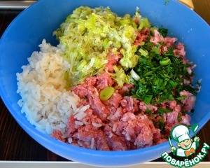 Рис предварительно отварить в подсоленной воде так до полуготовности. Откинуть на сито. Оба вида мяса прокрутить через мясорубку.