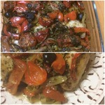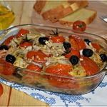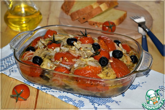 Смешать помидоры, лук, чеснок, маслины, 1 ч. л. прованских трав, семена фенхеля, добавить соль по вкусу.