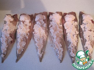 Пока рис варится, приготовим рулетики из скумбрии. Рыбу разделываем на чистое филе без кожи и костей.