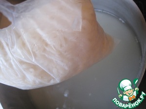Пакетик риса вынимаем из воды, даем стечь. Для подачи риса я использую формочку.