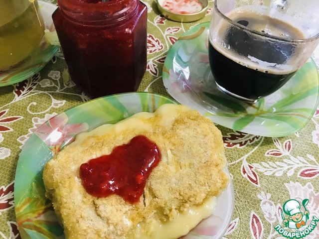 Жареный камамбер во Франции - классика жанра! Его традиционно подают с джемом. Как бы много похожих рецептов не было на сайте, я предлагаю вам свой вариант приготовления и подачи... Причём два! - закусочный и сладкий. Но поскольку я не нашла Камамбер, то заменила его на другие мягкие сыры - нейтральный Кавказский Умалат и соленоватый сливочный Natura. Получились нежные плавленные сыры в хрустящей тонкой корочке... Ммм! Единственный нюанс: жареный сыр - очень сытное блюдо. Удивляюсь, как французы подают его на десерт. Так что не готовьте много в первый раз. Две порции - потому что делала из двух кусочков сыра, но на мой взгляд, этого хватит на 4 порции!