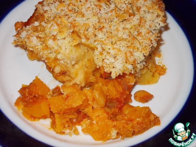 Делаю второй раз, правда без сыра и крошек,просто как рагу в казане. Для тех кто не любит тыкву отличный вариант, тк все уверены что там кабачки )