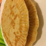 Тесто разделить на 16 частей. Каждый кусок тонко раскатать на припыленной мукой поверхности. Желательно, чтобы лепешки получились овальной формы.