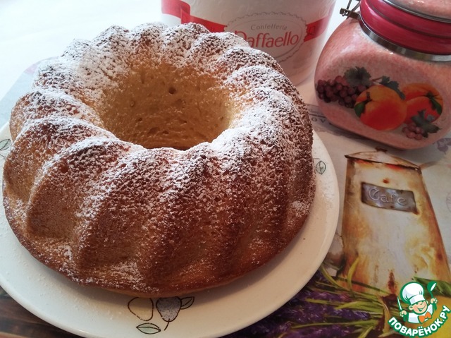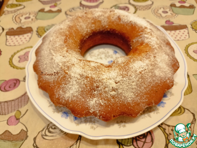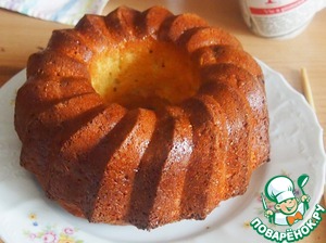 Поставить форму с кексом в разогретую духовку и печь при температуре 180 градусов примерно 40 минут. Готовность определять с помощью деревянной палочки. Готовый кекс оставить на 10 минут в форме, затем осторожно вынуть из формы.