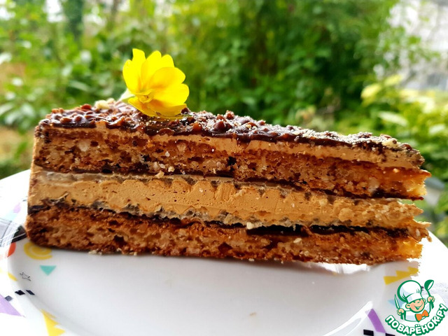 Крем: сливочное масло, сгущенное молоко, какао - смешать все и взбить. Выложить в смазанную маслом eмкость, поставить в печь.