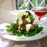 Долма (толма) – восточный «родственник» наших голубцов: это начиненные фаршем листья (чаще всего виноградные) или овощи (баклажаны, помидоры и др.). Обычно для долмы используют мясной фарш с рисом, но есть и вегетарианские варианты долмы. Долму делают во всех странах на территории от Балкан до Ирана, и в каждой стране есть свои особенности приготовления этого блюда. Грузинская долма пряная и довольно острая: в нее кладут кинзу, петрушку, эстрагон, сельдерей, чеснок, красный перец. Такая долма отлично сочетается с грузинским красным вином.