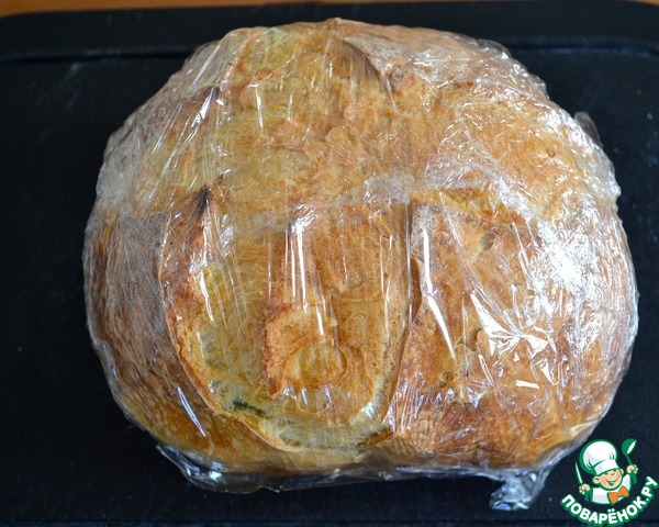 • И заверните в пищевую пленку... Оставьте хлеб напитаться всеми вкусами-ароматами около часа. Такой хлеб - замечательная идея для пикника на природе!